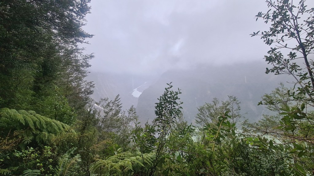 • Once I made peace with myself about this possible unachieved goal (and because my phone was in a dry spot, not so accesible) I found myself paying more attention to the trail, to the luxurious vegetation and to different plants. And yeah, when I reached the viewpoint I wasn’t able to see the glacier because of the fog